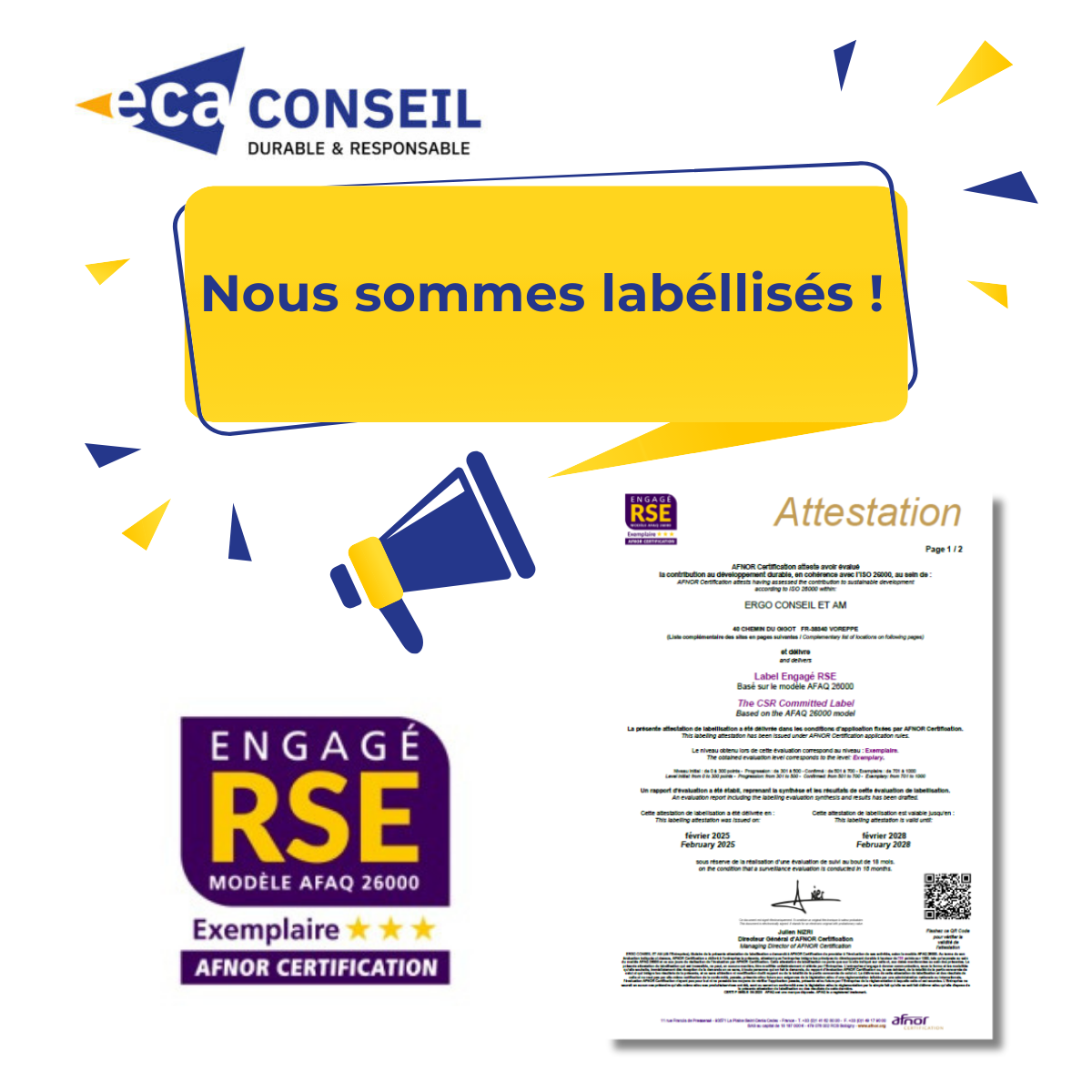Le cabinet ECA Conseil vise une labellisation RSE, à savoir le Label Engagé RSE, à échéance début 2025.